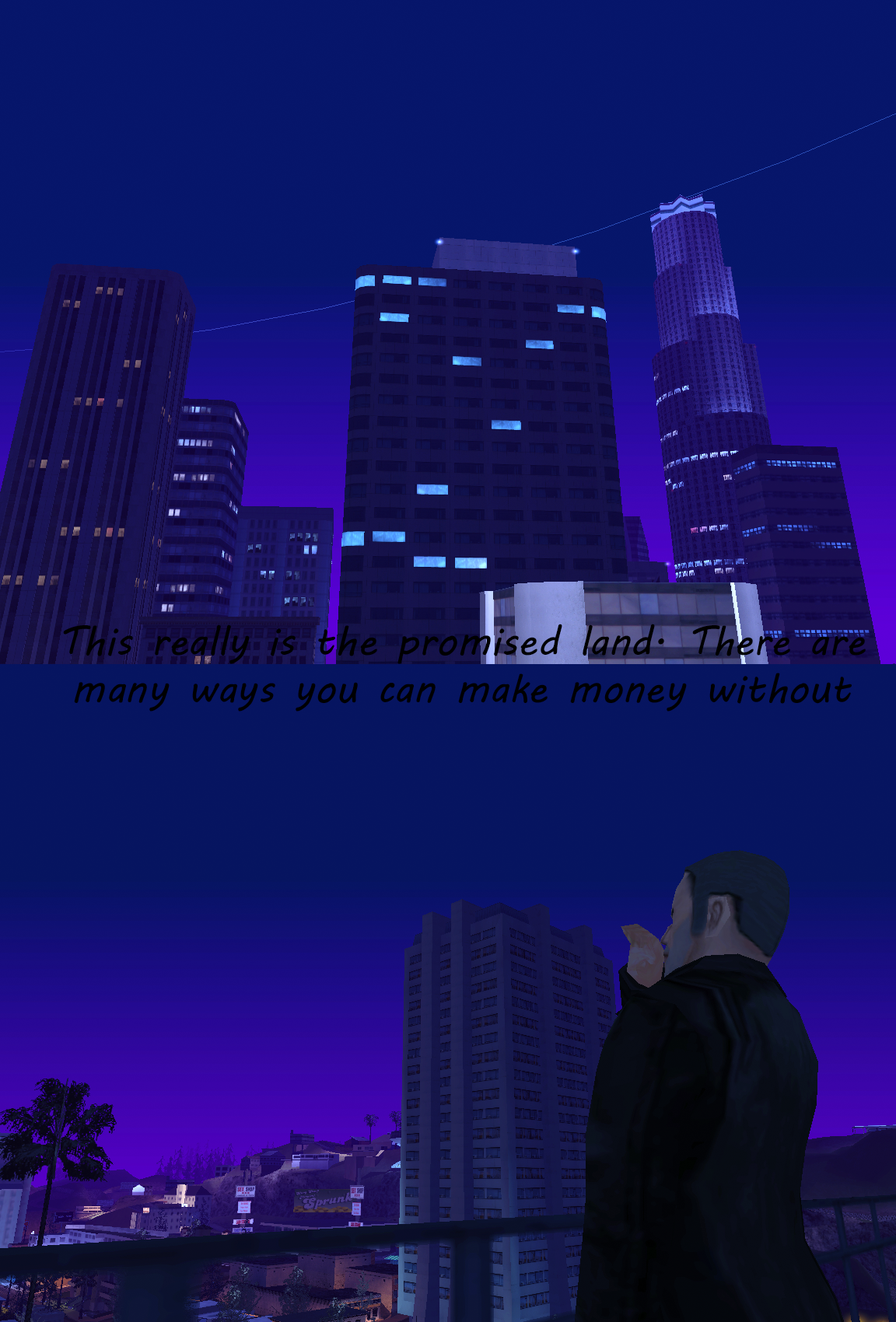 5. Kareem “Big Loc” Davis Ime: Kareem Davis Nadimak: Big Loc Mjesto rođenja: Los Santos Banda: Rollin’ 60s Crips Dob: 23 Karakter: miran, ali opasan kad treba; lojalan, hladan u stresnim situacijama Izgled: visoki Afroamerikanac, tetovaže “Rollin’ 60s” i “Blue Blood”, plava bandana uvijek uz njega Početak – Dijete Ulice Kareem je rođen u Los Santosu u blizini Willowfield-a, u kraju gdje se od malih nogu učilo da ili se boriš – ili nestaneš. Odrastao je bez oca, dok mu je majka radila po cijele dane pokušavajući ga držati podalje od ulice. Ali ulice imaju svoj magnet. Još sa 13 godina visio je s lokalnim klincima iz Cripsa, gledajući starije kako voze aute, nose lančiće i žive brzo. S 16 godina već je bio poznat u hoodu kao mali s hladnom glavom i velikim srcem. Nadimak “Big Loc” dobio je jer je, iako mlad, uvijek stajao kao odrasli – čvrst, nepokolebljiv i vjeran “blue flagu”. Pad – Ulica ga guta U 18. godini uhvaćen je u oružanoj pljački. Prvi put zatvor, prva lekcija – nikad ne pričaš, nikad ne izdaješ svoje. U zatvoru je postao još hladniji. Stekao poštovanje starijih Cripsa koji su mu dali do znanja da ima potencijal da postane nešto više od običnog "Residenta" Kad se vratio van, više nije bio klinac – bio je respektovan. Vodio je mlađe, učio ih kako da prežive, kako da poštuju pravila ulice. Ali duboko u sebi, Kareem je znao da svaka ulica ima isti kraj – zatvor ili groblje. Promjena – Mir u tišini Nakon što mu je najbolji prijatelj Cristopher Brooks poginuo u pucnjavi s rivalskim klikama, Kareem se slomio. Shvatio je da sve što gradiš u hoodu može nestati u jednoj sekundi. Ostavio je oružje, povukao se i preselio iz grada. Otvorio je malu radionicu – “Loc’s Garage” .. -Mislio je da je napokon našao mir. - No sve više kako je vrijeme odmicalo, Kareem-u se vraćala želja za povratkom, povratkom u onaj kraj gdje je sve započelo za njega. Godinama je živio mirno, daleko od plave bandane i uličnih kodova. Sve dok ga prošlost nije ponovo pronašla. Povratak – Once a Loc, Always a Loc Jedne noći saznao je da je njegov mlađi rođak Dante – momak kojeg je pokušavao držati podalje od bande – završio u bolnici nakon sukoba s rivalima. To je bila kap koja je prelila čašu. Kareem je otvorio ladicu, izvadio staru plavu bandanu koju nije dotakao godinama. Vratio se u Los Santos— ista lica, isti miris dima, isti haos. Kad su ga klinci vidjeli, znali su da se nešto sprema. Big Loc je opet bio tu. Sad više nije trčao za slavom, niti za strahom. Sad je bio simbol. Čovjek koji je sve izgubio, ali i dalje stoji. Ulica ga je opet zvala, i on se odazvao — ne zbog sebe, nego zbog svojih. “Nisam ja birao ulicu... ulica je izabrala mene.” @Reuben_Berg