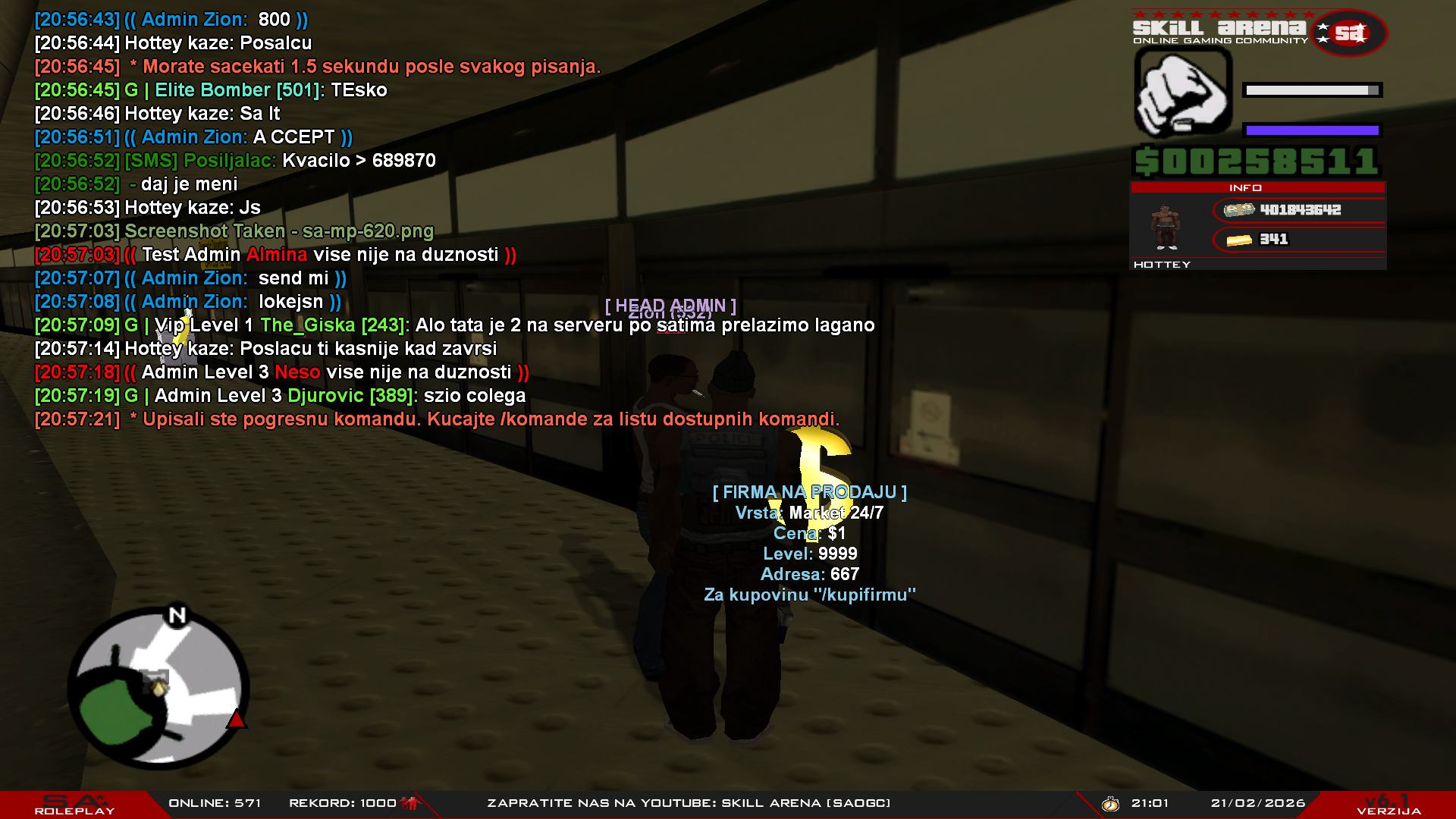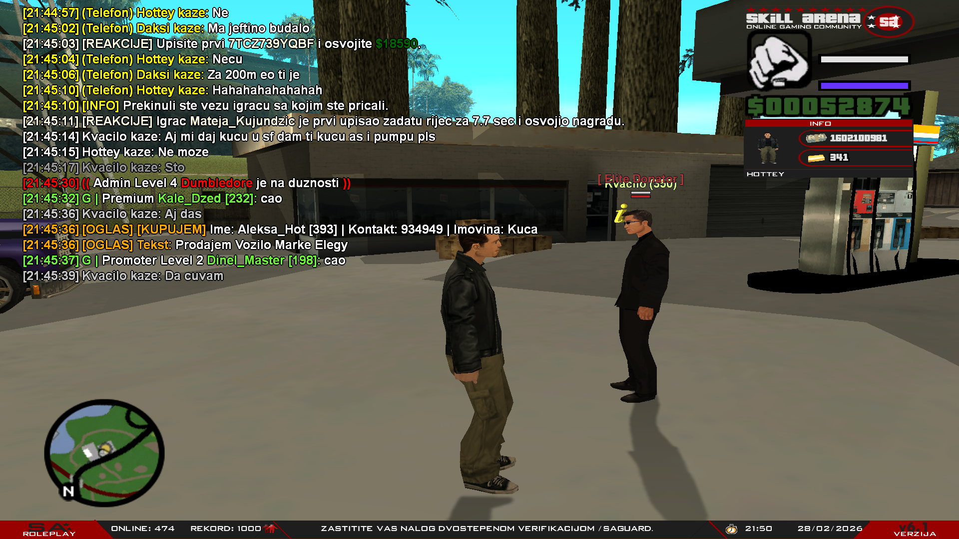 19. Poštovani igrači, S’ ponosom Vam predstavljamo novi event “La Casa De Papel”. Ovo je samo jedan od mnogih evenata koji nam stižu u skorijem periodu. Ovo je prvi DM&RP event koji će biti održavan vikendima. Igrači će biti podeljeni u dva tima od po 20 igrača(+1 admin u svakom timu). Event je kao i po samom nazivu, baziran na seriju “La Casa De Papel”. Tim pljačkaša imaće prednost od 3 minuta da se pripreme za ulazak policijakog tima. Pljackaši će imati pojedinačnu opciju da se predaju, čime ostvaruju 0.01%(ukoliko je nagrada 20.000.000$, dobijate 200.000$)ukupne svote opljačkanog dela(osim u slučaju da ih policija zaustavi u pljački). Naravno pošto je event baziran i na RP deo, pored toga svaki igrač koji se bude predao, dobija jail od 10 minuta. Sama pucnjava timova, trajaće 5 minuta. Nakon toga, pljačkaši imaju mogućnost da pobegnu do odredjenog dela ili da ostanu do kraja. U slučaju da tim pljačkaša izabere drugu opciju i izgubi, dobijaju jail od 5 minuta. U slučaju da izaberete prvu opciju, morate stici do označenog dela. Ukoliko budete zaustavljeni do tog dela dobijate jail od 15 min! Ali to nije sve! Svaki tim će imati svog vodju. Na kraju same pljačke, ukoliko tim pljačkaša uspe da pobegne od protivničkog tima, vodja istog ima opciju da podjednako podeli nagradu sa svim preostalim članovima pljačke ili da pokuša da nasamari članove i pobegne. U slučaju da vodja pobegne od svojih članova, svu nagradu ostavlja sebi, ali ukoliko ga njegovi članovi stignu dobijaju 0.01% više. Naravno ista stvar važi i za vodju policije. Ukoliko uhvate pljačkaše, vodja policijskog tima može uzeti sav novac i pokušati pobeći. Imajte u umu da za vodje oba tima dobijate 30 minuta jaila, ukoliko budete uhvaćeni u korupciji. Uskoro očekujte "Weekly evente"! Više o tome i novim eventima biće objavljeno uskoro, a do tada se zabavite sa novim eventom! Termin održavanja eventa: Test event biće održan u ponedeljak (23.3.26.) u 20H. Nagrada će iznositi 40.000.000$ Od nedelje 28.3.26. event će se održavati stalno. Nagradni fond za ovu nedelju iznosi 2500 SAC-a Skill Arena Event Team