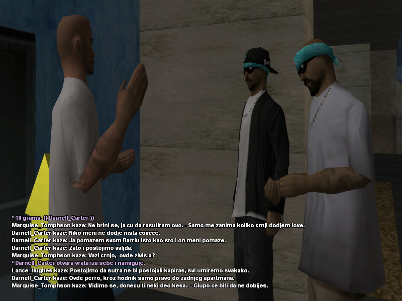 Obrazloženje: Dakle, bila je potera koja je trajala nekih 20 minuta gde clanu moje organizacije koji je ujedno i bio vozac igrica crashala te smo ostali bez vozila, ja kako bih sacekao clana da udje nazad ingame koristim komandu /eats 9 i ulazim u stub mosta, gde dolazi clan organizacije doticnog i mene tazeruje i hapsi. Clan RPE tima salje dokaz o svom prekrsenom pravilu i mesanje u RP uz pomoc svojih komandi u moj konkurs za RPEa. Ukoliko je doticni usao u spec na mene zbog nekog reporta ili prijave zahtevam da se posalje slika tog reporta/prijave jer u suprotnom on nema razlog mene da speca a pogotovo da njegovom clanu pomogne uz pomoc tog speca.