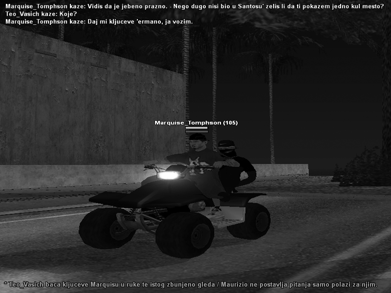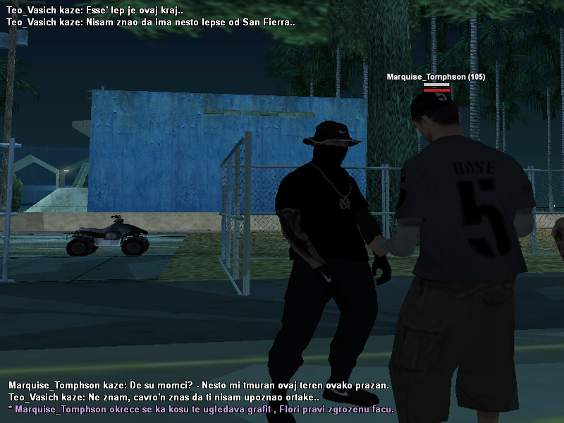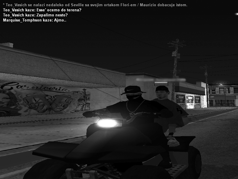 1. Story of Maurizio 'Blind' Velasquez. Noć je bila gusta od dima, kiša je lila niz prljave prozore autobusa koji je ulazio u Los Santos. Na zadnjem sedištu, u polumraku, sedeo je Maurizio Velasquez, poznat među uličnim psima San Fierra kao Blind. Levo oko – mrtvo, belo, hladno. Kažu da kad te pogleda tim okom, ne vidi te — pročita te. Do njega, njegov brat Flori, ćutljiv, s licem punim ožiljaka i tetovaža koje govore više od reči. Zajedno, vraćaju se iz senke. San Fierro su napustili u krvi. Njihov otac, Rosas Velasquez Jr., bio je stara škola — čovek koji je znao pravila ulice. Ali kad su ga ubili, sve se srušilo. Maurizio i Flori su ostali sami, bez krova, bez mira — ali ne i bez imena. U San Fierru su već ostavili trag — RIFA klika pamti njihovu senku. Pamti krv svog vođe. Ali niko nikad nije dokazao ko ga je smaknuo. Samo su svi znali — braća Velasquez su tog dana postala duhovi. Los Santos, novi grad – ista igra Novi grad, nove ulice, isti đavo u kostima. Maurizio kupuje mali stan u Las Collinasu, dok Flori odlazi dublje, u Sevillu, gde krv i poštovanje teku zajedno s muzikom iz lowridera i mirisom benzina. Tu, među plavim bandanama i zidinama ispisanim tagovima, upoznaju Lorenz’a, glavnog u Varrios Los Aztecas. Lorenzo nije bio glup. Video je odmah s kim ima posla. Kad su Velasquezi skinuli majice i pokazali svoja tela, pune tetovaža – od RIFA oznaka do simbola Varrio Los Aztecasa – sve je bilo jasno. To nisu bili obični uličari. To su bili ljudi koji su već preživeli pakao i vratili se po još. Ubrzo su postali priča među Aztecasima. Dvojica braće koji ne pričaju mnogo, ali rade prljavo. Blind — čovek koji gleda samo jednim okom, ali vidi ono što drugi promaše. I Flori, njegov brat, hladan kao beton. Krenuli su polako, ali odlučno — sitni poslovi, zaštita, preprodaja, oružje. Ubrzo su počeli da skupljaju respect — ne lažni, ne od straha, nego onaj pravi, koji se zarađuje na asfaltu. Svaki posao, svaka borba, svaka metak koji su ispalili u ime klike — Varrios Los Aztecas je postajao jači. Tri suze — tri greha Ispod Blindovog desnog oka, tri tetovirane suze. Za običnog prolaznika, ništa posebno. Ali svaka ima svoju priču, svaki trag nosi težinu. Prva suza – za onog kog više niko ne spominje: vođu RIFE, kojeg su Blind i Flori sahranili u tišini. Druga suza – za crnca koji je mislio da može prevariti Blinda za 100.000 dolara u kokainu. Kad je pokušao da nestane s lovom, našli su ga tri dana kasnije – bez jezika. Treća suza – za pedofila koji je vodio striptiz klub u San Fierru. Hteo je da iskoristi njihovu sestru Amaru, klinku koja nije imala ni 16. Maurizio ga je lično zakopao iza kluba. I od tada, njegovo levo oko nikada nije ponovo videlo svetlo. Blind se vraća Danas, Blind i Flori više nisu obični članovi. Njihovo ime u Sevilli šapuće se sa poštovanjem. Varrios Los Aztecas ih vide kao braću koja dižu kliku iz pepela, kao one koji su spremni da prljaju ruke kad drugi okrenu glavu. Kad Blind prolazi ulicom, čak i stariji članovi klimnu glavom. Ne zato što moraju. Nego zato što znaju — ovaj čovek nije izgubio oko, on je dao jedno za ime koje danas nose. I dok Los Santos bruji od ratova, dok bande režu asfalt i svetla policijskih helikoptera šaraju noć — Maurizio „Blind“ Velasquez zna: Isti grad, ista pravila, ista igra. Samo ovaj put, on igra da vlada.
